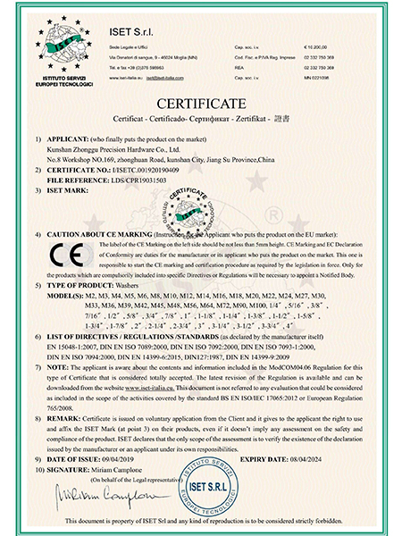 螺母CE證書